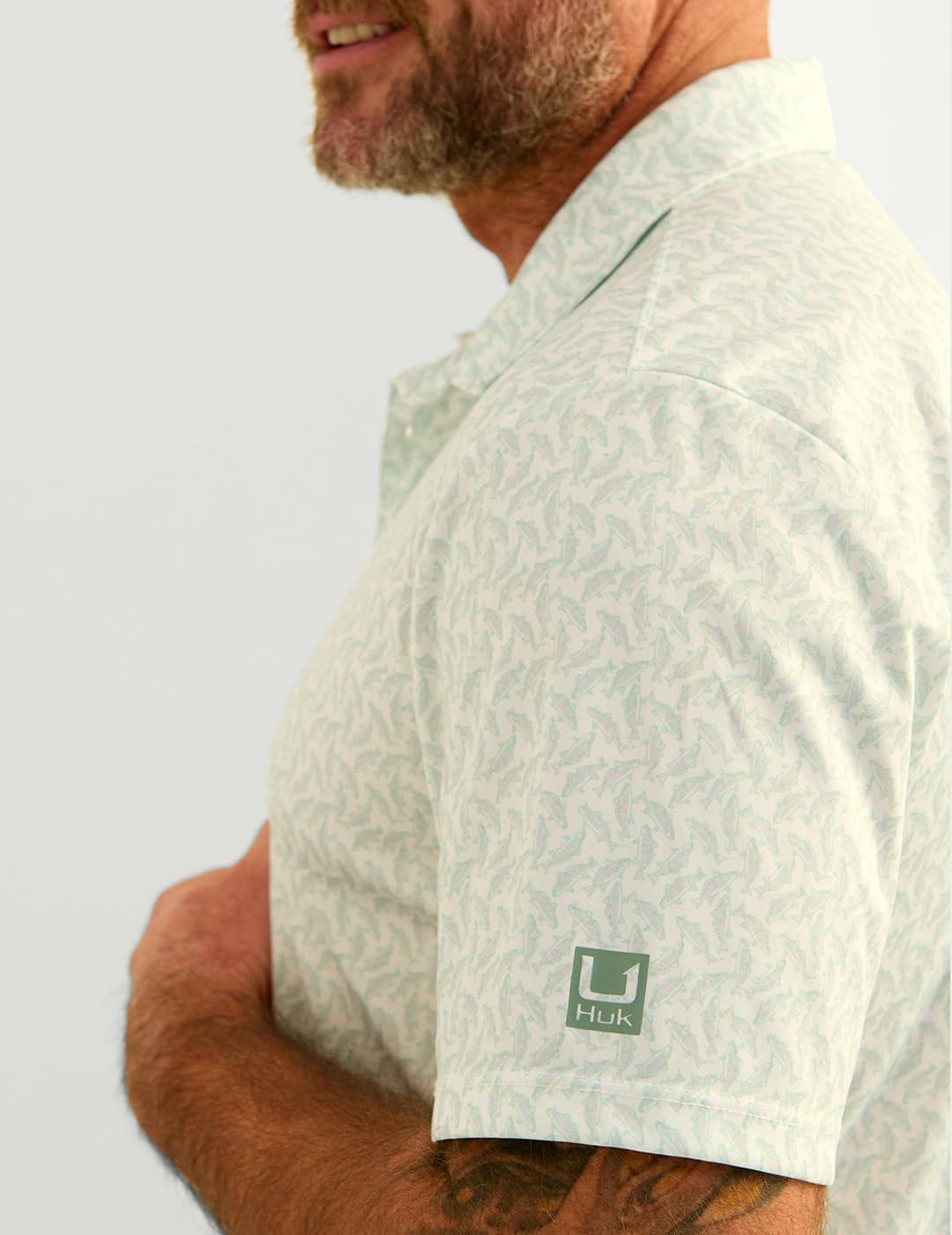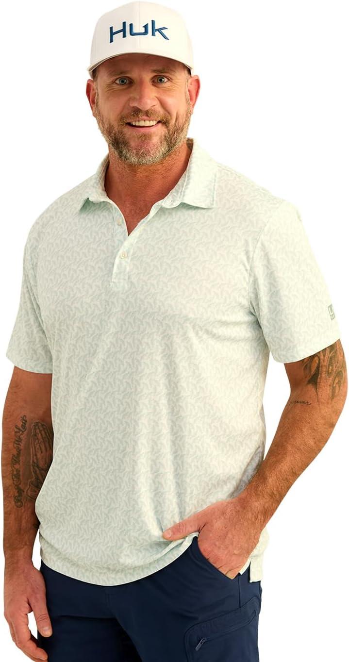 HUK Men’s Pursuit Pattern, Performance Short Sleeve Polo Shirt(Summer Green)