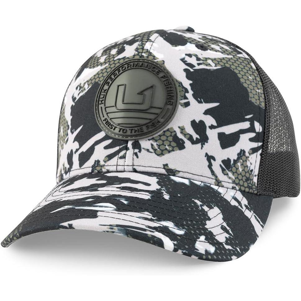 imageHUK Mens Trucker AntiGlare Snapback Fishing HatBold Patch  Crystal Blue