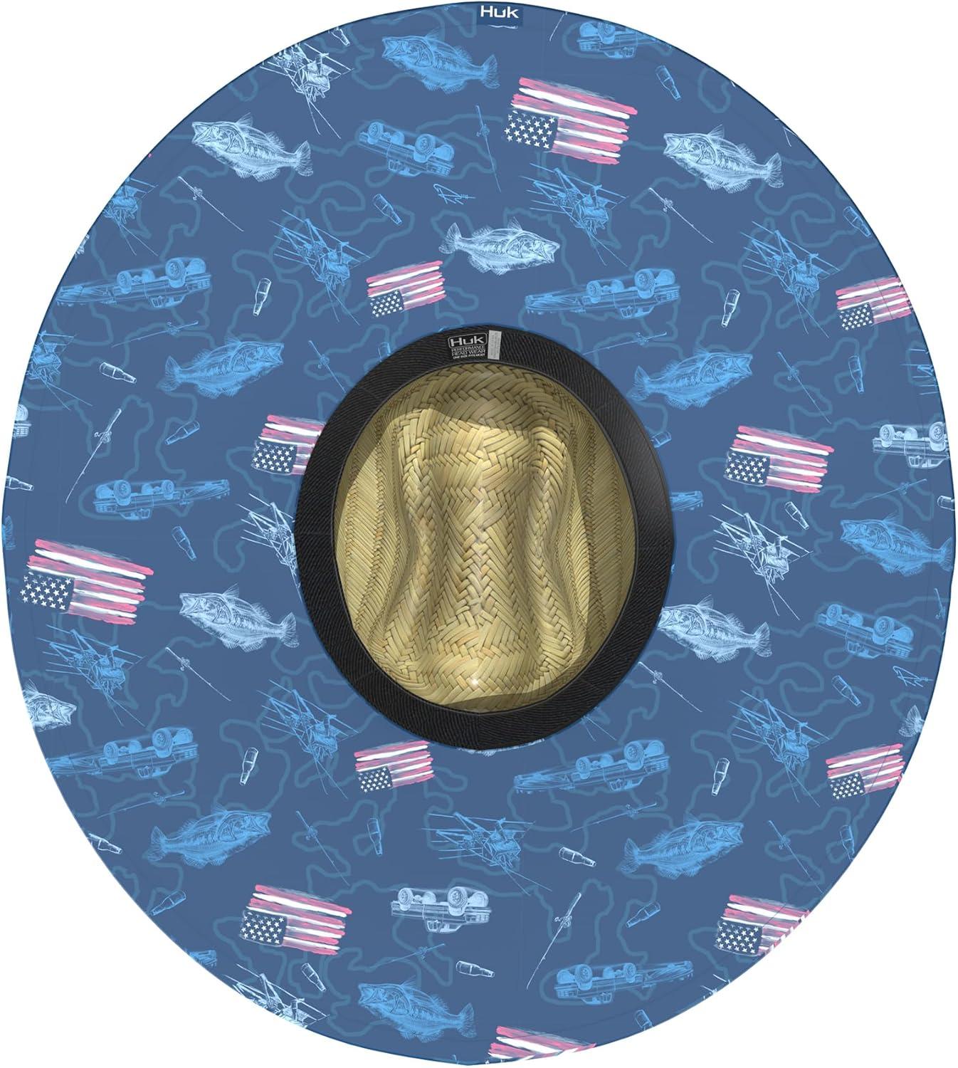 HUK Unisex Kid’s Straw, Wide Brim Fishing & Beach Hat(Kc Fish and Flag – Set Sail)