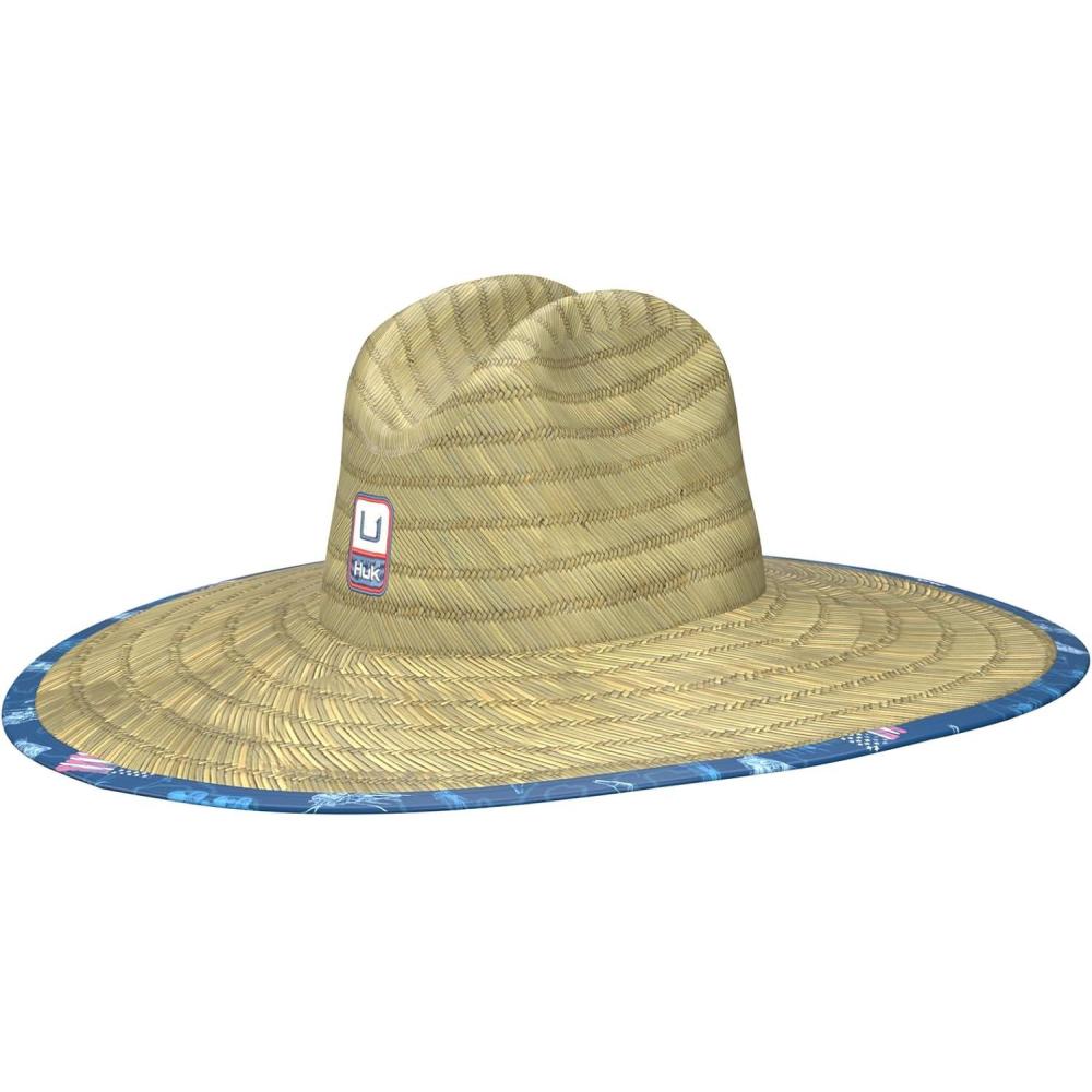 HUK Unisex Kid's Straw, Wide Brim Fishing & Beach Hat(Kc Fish and Flag - Set Sail)